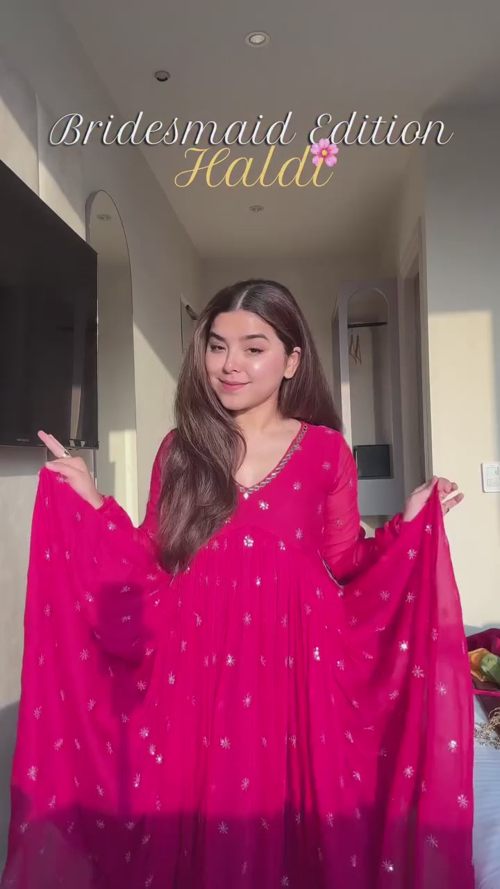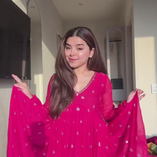 Heavy Faux Georgette Anarkali Set with Embroidery Work, Dupatta & Bottom | Ready to Wear Partywear Suit – Pink & Yellow