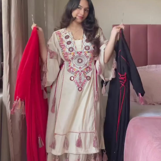 • Work: Heavy Mirror Work, Thread Embroidery & Colourful Tassels