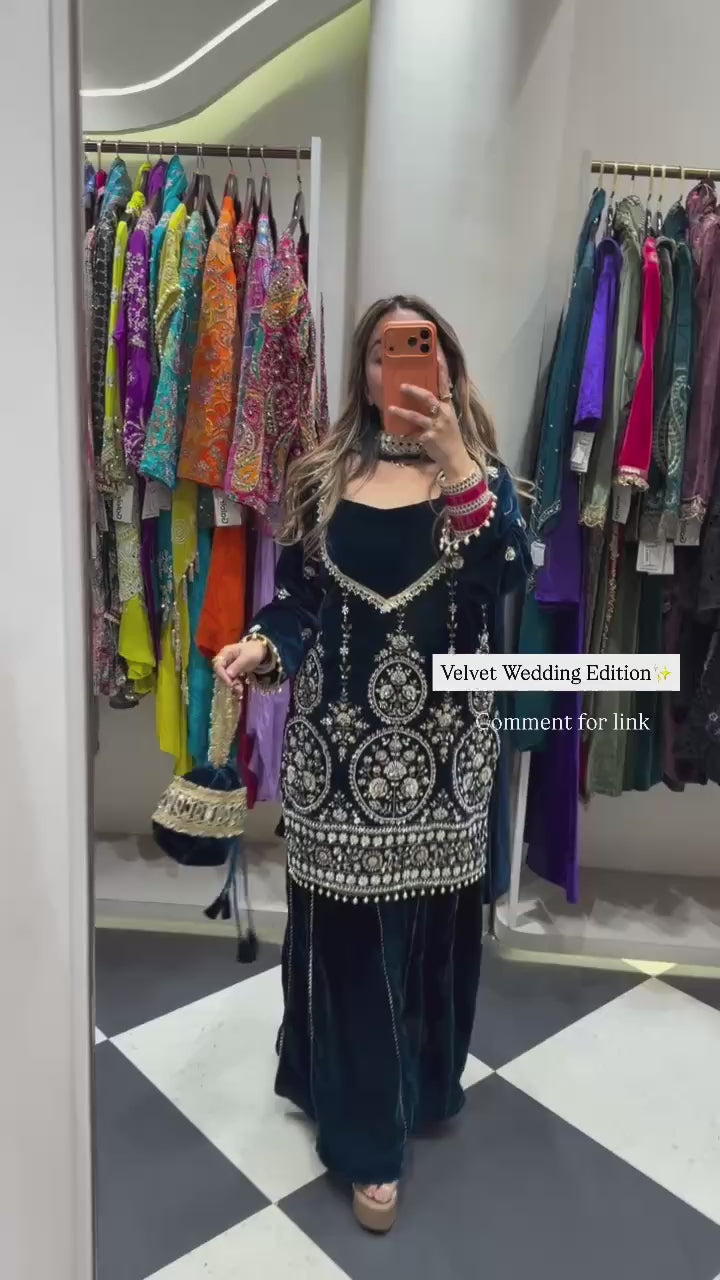 Premium Velvet Sharara Set for Women | Heavy Sequence Embroidery Work | Real Mirror Dupatta | Party & Wedding Wear Suit Set
